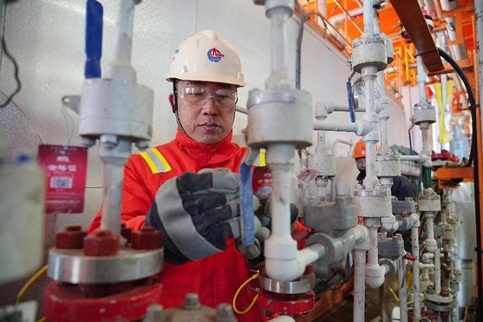 項(xiàng)目工程師調(diào)試接收站內(nèi)部管線,保障項(xiàng)目后續(xù)平穩(wěn)運(yùn)行。李浩瑋攝
