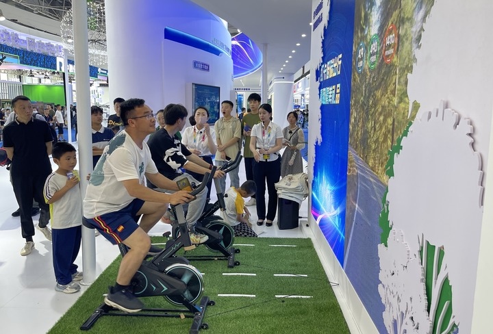 5月27日,市民在數(shù)博會(huì)上體驗(yàn)數(shù)字產(chǎn)品。新華社記者 駱飛 攝