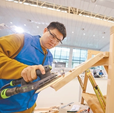 四川宜賓市,選手在參加家具設(shè)計(jì)師職業(yè)技能競(jìng)賽。蘭 鋒攝(影像中國(guó))