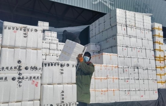 “車(chē)來(lái)嘍!”“往里倒,再倒,好,裝車(chē)!”盡管天氣寒冷,市場(chǎng)里卻是一片火熱的繁忙景象。從各地運(yùn)來(lái)的蔬菜陸續(xù)進(jìn)場(chǎng),工作人員手腳麻利地將成箱的蔬菜從大車(chē)上卸下再裝上小車(chē),隨后,這些蔬菜將運(yùn)往寧夏各地小型批發(fā)市場(chǎng)和商超?!盀榱耸卟嗽谶\(yùn)輸過(guò)程中不被凍壞,我們給蔬菜蓋了3層棉被,確實(shí)下了一番功夫?!鄙虘赳R伏珍說(shuō)。