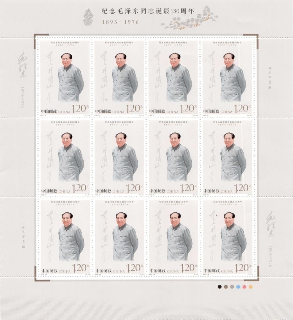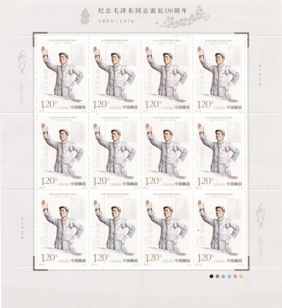 郵票圖案運(yùn)用數(shù)字繪畫實(shí)現(xiàn)傳統(tǒng)繪畫的視覺表現(xiàn),生動(dòng)還原了毛澤東同志偉岸的形象和偉大的氣魄,展現(xiàn)出毛澤東同志運(yùn)籌帷幄的雄才偉略和高瞻遠(yuǎn)矚的偉人風(fēng)范。