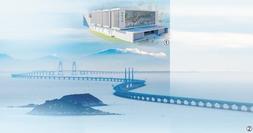 圖①:鵬城云腦大科學(xué)裝置。鵬城實驗室供圖 圖②:晨曦中的港珠澳大橋。新華社記者 劉大偉攝