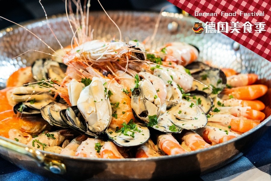 馨咖啡——海鮮洋酒自助,在行政總廚Jerry張強的加持下,再度增添美味的獨特體驗,8月9日—8月25日,正宗德式美食驚艷亮相!德國美食以其豐富多樣、實在美味和濃郁地方特色而聞名。來自德國巴伐利亞地區(qū)的特色美食“烤豬肘”, 外皮金黃酥脆,內(nèi)部肉質(zhì)鮮嫩多汁,搭配酸菜和土豆泥,口感豐富; 德國香腸種類繁多,芝士香腸、盤腸、圖靈根腸、法蘭克福腸、黑胡椒腸,制作工藝獨特,口味多樣;維也納炸豬排,酥脆的外皮和鮮嫩的肉質(zhì)形成的鮮明口感對比;德式芥末燴海鮮,德式芥末為這道菜帶來獨特的風味,奶油、白葡萄酒、香草等調(diào)料,使湯汁變得濃郁醇厚,海鮮鮮嫩多汁,湯汁濃郁鮮美。更有享譽盛名的德國啤酒選擇,大麥的醇厚香氣、啤酒花的微微苦澀相互交織,營造出一種平衡而美妙的口感。