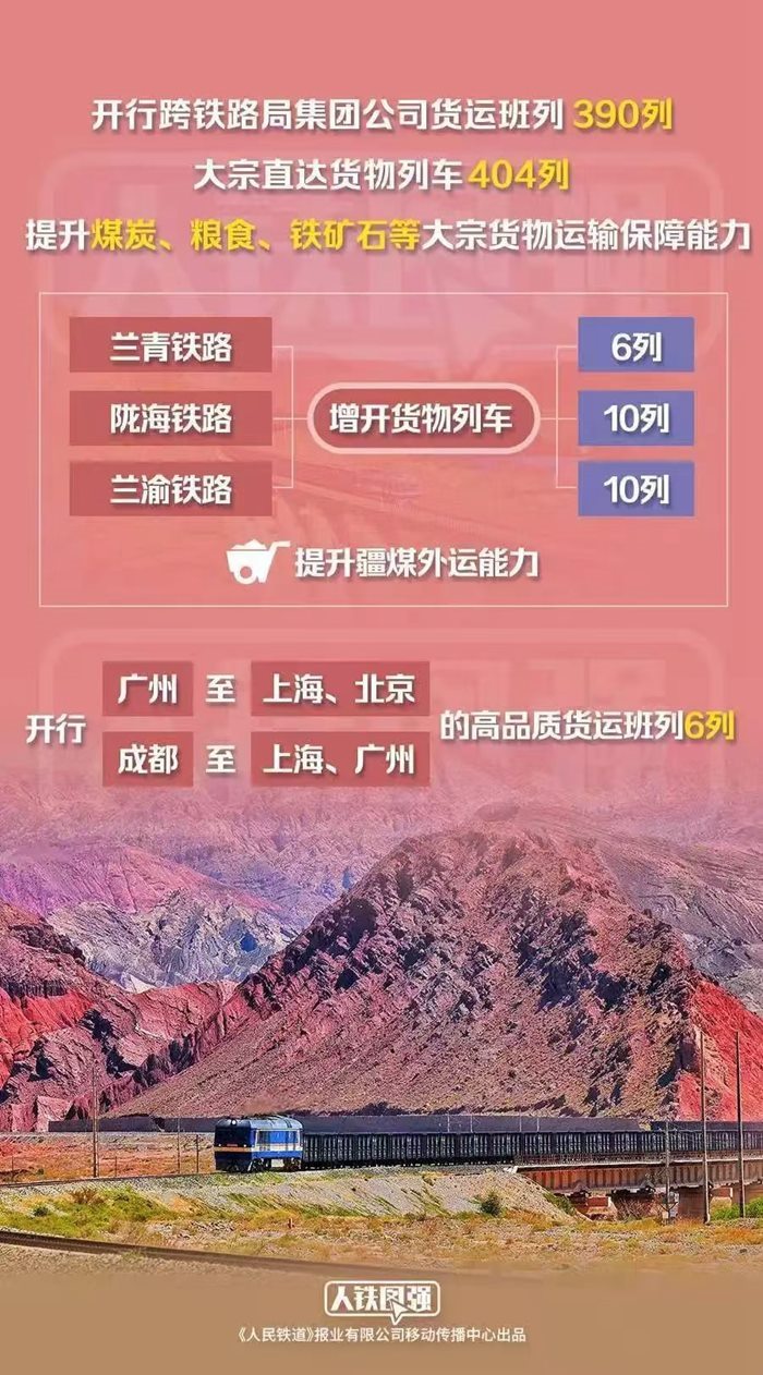 貨運方面,鐵路部門統(tǒng)籌運用線路、場站資源,安排開行跨鐵路局集團公司貨運班列390列,大宗直達貨物列車404列,提升煤炭、糧食、鐵礦石等大宗貨物運輸保障能力,為冬季能源保供和國民經(jīng)濟平穩(wěn)運行提供有力支撐。其中,優(yōu)化調(diào)整蘭州鐵路樞紐列車運行方案,蘭青、隴海、蘭渝鐵路分別增開貨物列車6列、10列、10列,提升疆煤外運能力。適應貨運市場需求,優(yōu)化貨運班列產(chǎn)品供給,開行廣州至上海、北京,成都至上海、廣州的高品質(zhì)貨運班列6列,串聯(lián)京津冀、長三角、粵港澳大灣區(qū)、成渝地區(qū)等主要經(jīng)濟區(qū)域,打造快捷物流產(chǎn)品示范線。