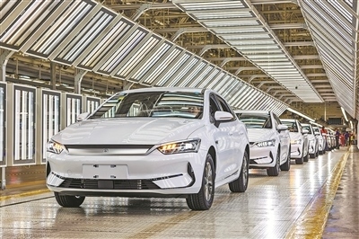 安徽省合肥市長豐縣合肥比亞迪汽車廠區(qū),新能源汽車整齊下線。長豐縣積極發(fā)展戰(zhàn)略性新興產(chǎn)業(yè),新能源汽車產(chǎn)業(yè)集群不斷壯大。