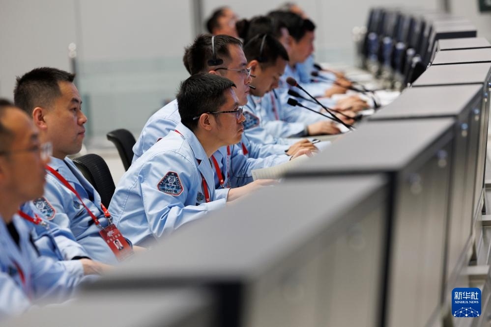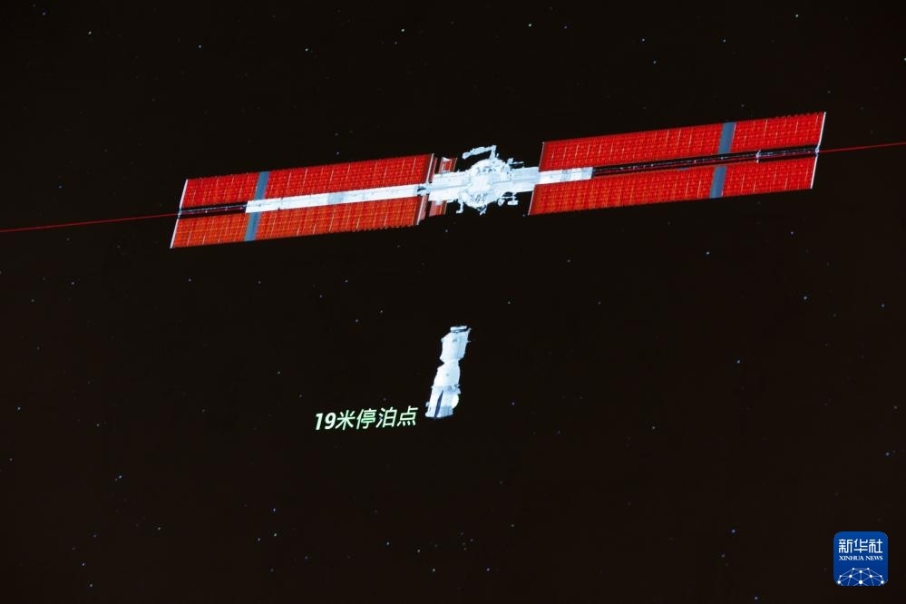 4月24日在北京航天飛行控制中心拍攝的神舟二十號(hào)載人飛船成功對(duì)接空間站天和核心艙畫面。新華社記者 金立旺 攝