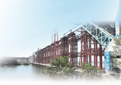 工人在橋面進行焊接作業(yè)。