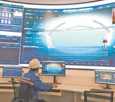 “模擬組合!”馬天亮一聲令下,工人點擊按鈕,一段拱肋進行虛擬拼裝。