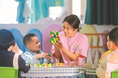 貴州省黔西市近年來(lái)鼓勵(lì)和引導(dǎo)社會(huì)力量興辦普惠托育機(jī)構(gòu),有效構(gòu)建起覆蓋城鄉(xiāng)的普惠托育服務(wù)體系。圖為5月12日,黔西市蓮城街道一托育中心,老師帶領(lǐng)小朋友堆積木。