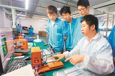 江西省吉安市峽江縣采取“校企合作”等方式發(fā)展職業(yè)教育,有針對(duì)性地培養(yǎng)企業(yè)需要的專(zhuān)業(yè)技術(shù)人才,拓寬學(xué)生就業(yè)渠道。圖為近日,峽江縣職業(yè)中專(zhuān)的學(xué)生在學(xué)習(xí)鋰電池檢測(cè)技術(shù)。