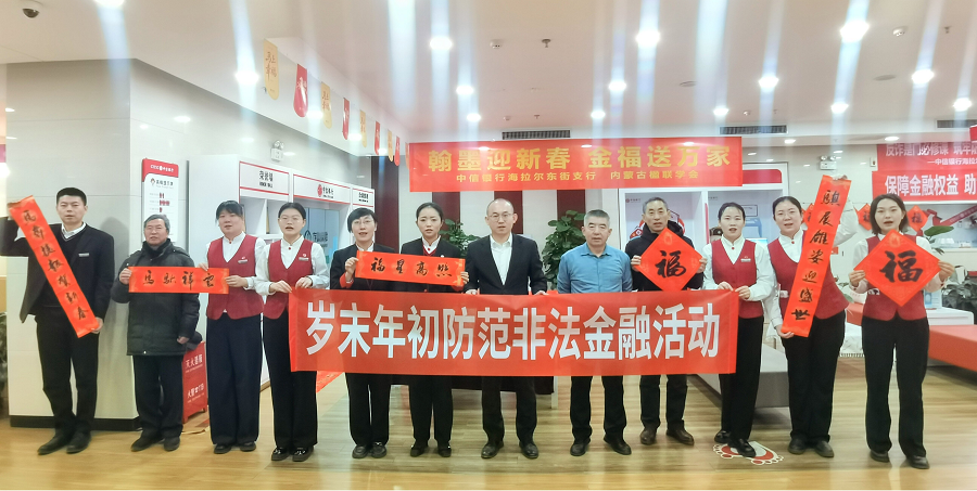 為營(yíng)造喜慶祥和的新春氛圍,切實(shí)提升轄區(qū)群眾防范非法金融活動(dòng)的意識(shí)和能力,近日,中信銀行呼和浩特海拉爾東街支行聯(lián)合內(nèi)蒙古楹聯(lián)學(xué)會(huì),開展“翰墨迎新春 金福送萬(wàn)家”主題活動(dòng),將傳統(tǒng)春聯(lián)文化與金融反詐知識(shí)深度融合,為市民送上一份別樣的“新春安全禮”。