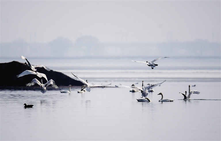 “現(xiàn)在湖面上的候鳥也就1萬多只,等到4月份的時候,候鳥才會大量歸來,屆時湖面上將出現(xiàn)4~5萬只候鳥集聚的畫面,很是壯觀?!蓖鯊娒棵空f起候鳥都很感慨,他說,隨著環(huán)境變好,候鳥越來越多,去年更是首次出現(xiàn)了紅腿鶴。為了保護候鳥安全過境,他們從2月中旬開始24小時不間斷巡視,并走街串戶進行保護野生動物的宣傳,突擊檢查轄區(qū)內餐飲企業(yè),確保不會出現(xiàn)濫食野生動物的現(xiàn)象。同時,森林公安部門還在網上排查,嚴打網上交易野生動物行為。