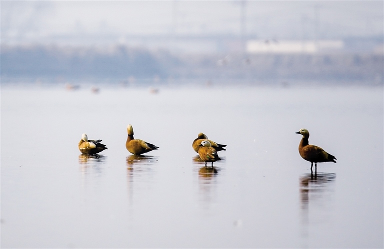 土默特左旗森林公安局副局長王強告訴記者,隨著生態(tài)環(huán)境的日益改善,海流水庫已成為候鳥遷徙途中的重要棲息“驛站”,每年春秋兩季在海流水庫過境的候鳥高達百萬只,種類涉及天鵝、遺鷗、大雁、蒼鷺等十余種,其中不乏國家一、二級重點保護動物。更可喜的是,現(xiàn)在海流水庫已經有赤麻鴨長期駐留。