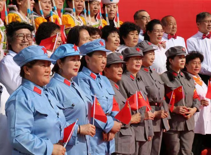 開展建黨百年群眾文化系列活動以來,呼市共舉辦大型專場演出20余場。在人民公園設(shè)置了“永遠跟黨走——群眾文化廣場”、“合唱廣場”、“廣場舞廣場”,給廣大群眾提供了參與建黨百年群體活動的集中展示平臺,進一步豐富了廣大人民群眾的精神生活,營造出全社會感黨恩、頌黨恩的濃厚氛圍。此外,青城公園內(nèi)三個“主題廣場”設(shè)立后,廣大市民群眾也紛紛合影留念,自發(fā)組織起來唱紅歌、跳廣場舞,以多種形式積極參與活動。據(jù)統(tǒng)計,截至目前由群眾自發(fā)組織在社區(qū)、公園、廣場開展的展演活動近千余場,參與人數(shù)達幾十萬人次,掀起了建黨100周年群眾性文化活動的高潮。