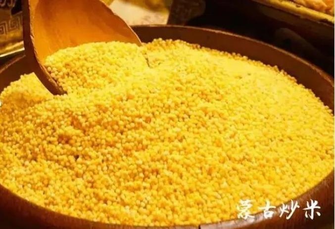 炒米是用糜子經(jīng)過蒸、炒、碾等多道工序加工而成的,加入酸奶和白糖等輔料進行攪拌,既解餓又解渴。炒米清香爽口,是別具風味的傳統(tǒng)食品,也是當?shù)啬撩袢粘I钪斜夭豢缮俚氖称贰?/p>