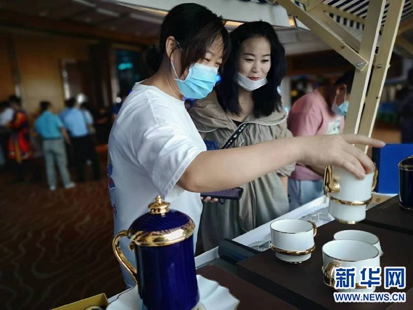 這是在活動(dòng)現(xiàn)場(chǎng)設(shè)置的“內(nèi)蒙古禮物”非遺文創(chuàng)展示區(qū)。新華網(wǎng)發(fā)