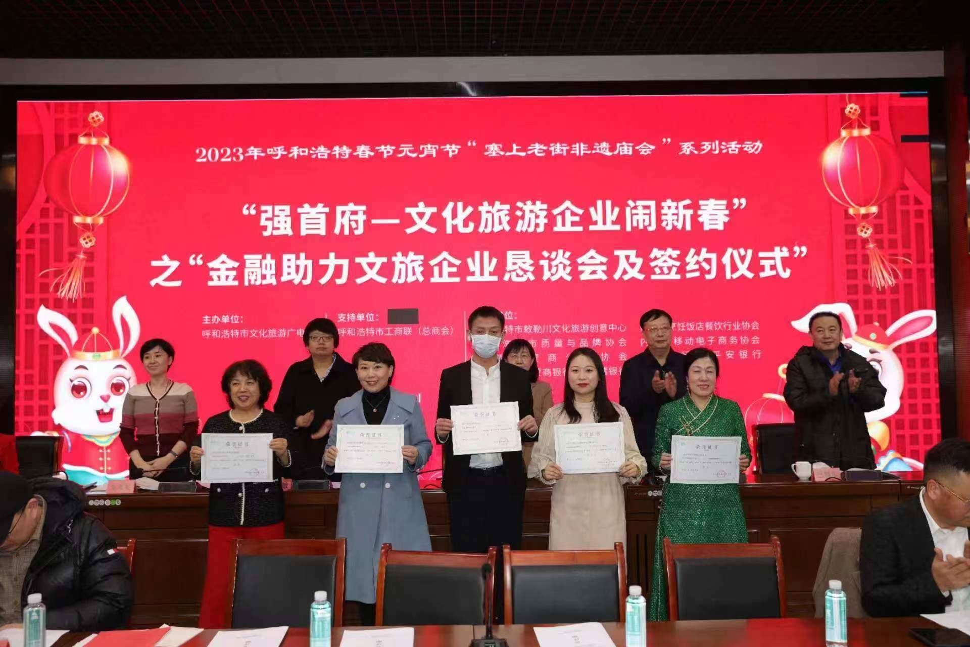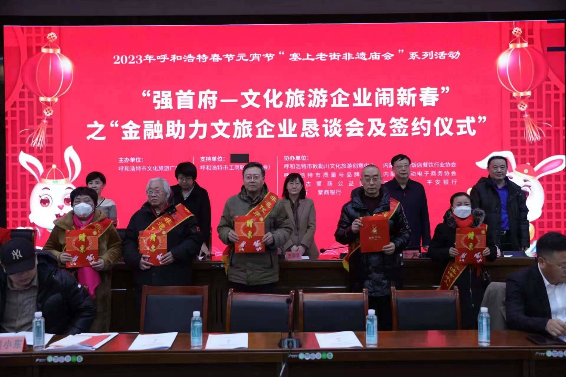2月4日,呼和浩特市文化旅游廣電局與呼市工商聯(lián)(總商會(huì))舉辦“強(qiáng)首府—文化旅游企業(yè)鬧新春”之“金融助力文旅企業(yè)懇談會(huì)及簽約儀式”,共同為首府提振市場信心、促進(jìn)文化旅游產(chǎn)業(yè)高質(zhì)量發(fā)展、促進(jìn)首府“六大產(chǎn)業(yè)集群”作出貢獻(xiàn)。