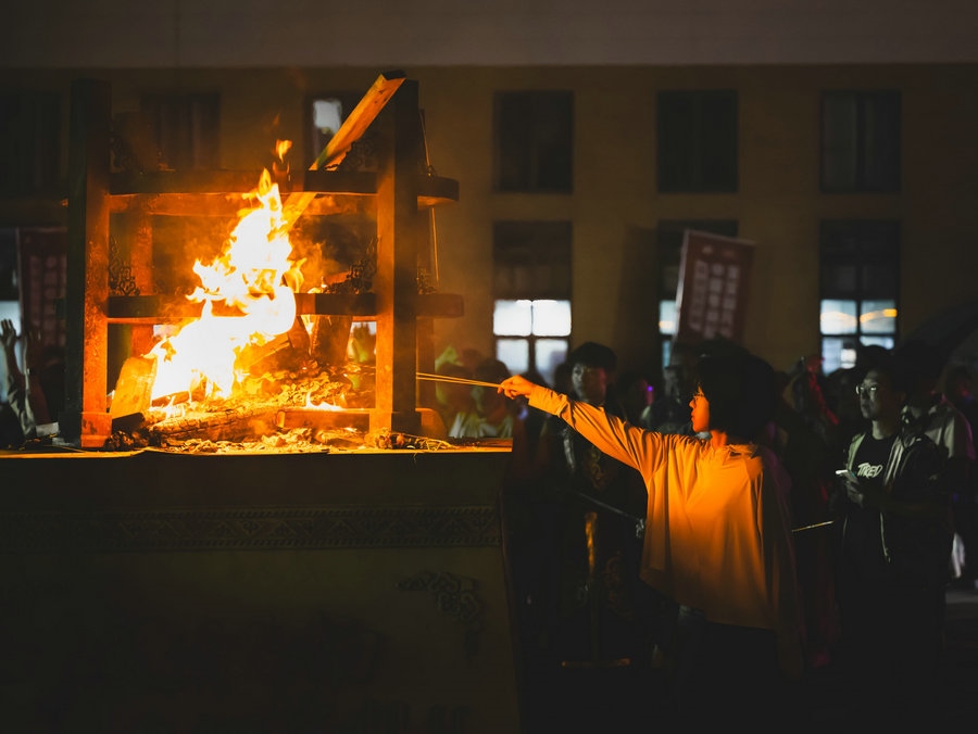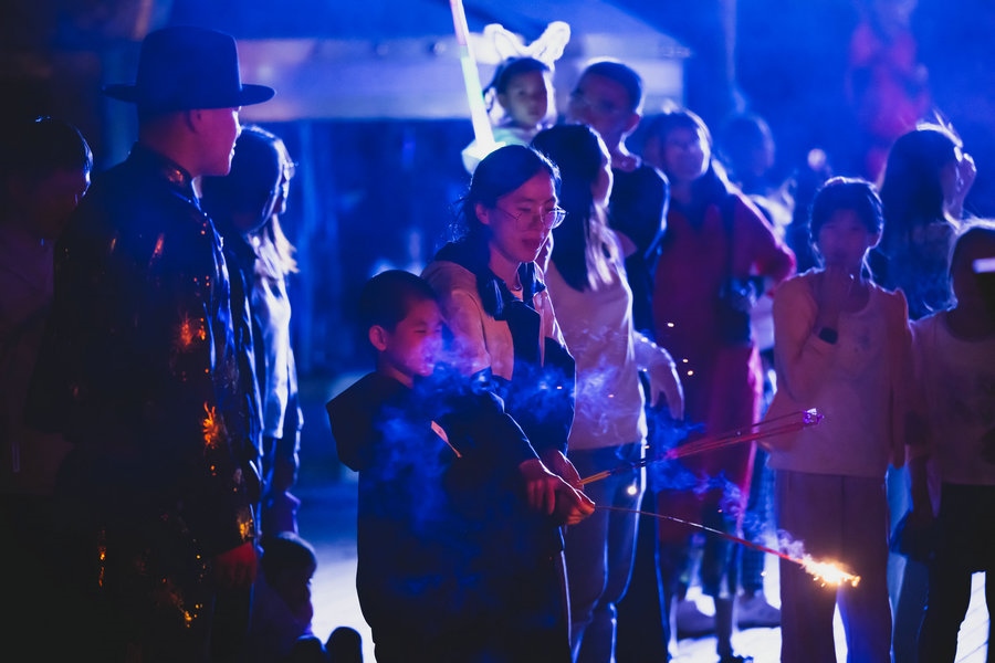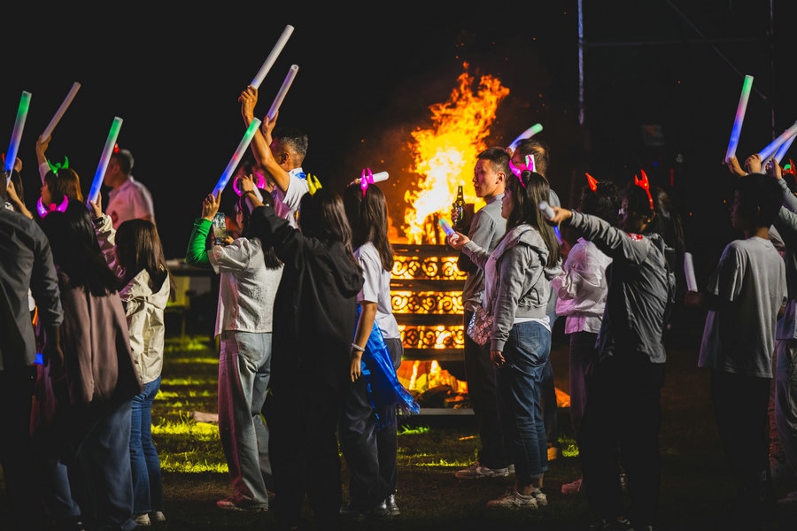 當夜幕降臨,熊熊篝火點亮草原夜色,你也可以加入到狂歡的隊伍中,圍著篝火、拉起手,跳起歡快的安代舞,感受豐富多彩的文化娛樂活動,徜徉夜幕下草原歡樂的海洋。(林則志 攝影)