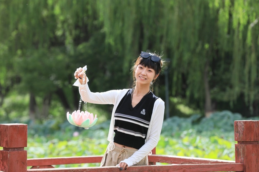初秋時節(jié),水光瀲滟間,公園內(nèi)的滿池荷花嬌艷、荷葉青翠,漫步棧道中,仿佛置身于一幅詩意的畫卷。