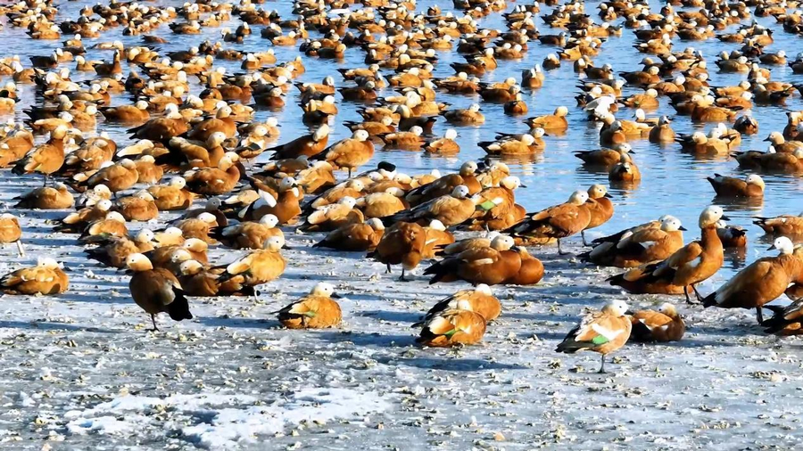 隨著天氣轉(zhuǎn)暖,冰雪消融,土默特左旗的海流水庫(kù)迎來(lái)了大批北歸的候鳥(niǎo)。它們或在水面上嬉戲覓食,或在空中自由翱翔,為初春封凍的水庫(kù)增添了一抹靈動(dòng)的色彩。