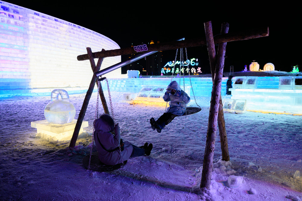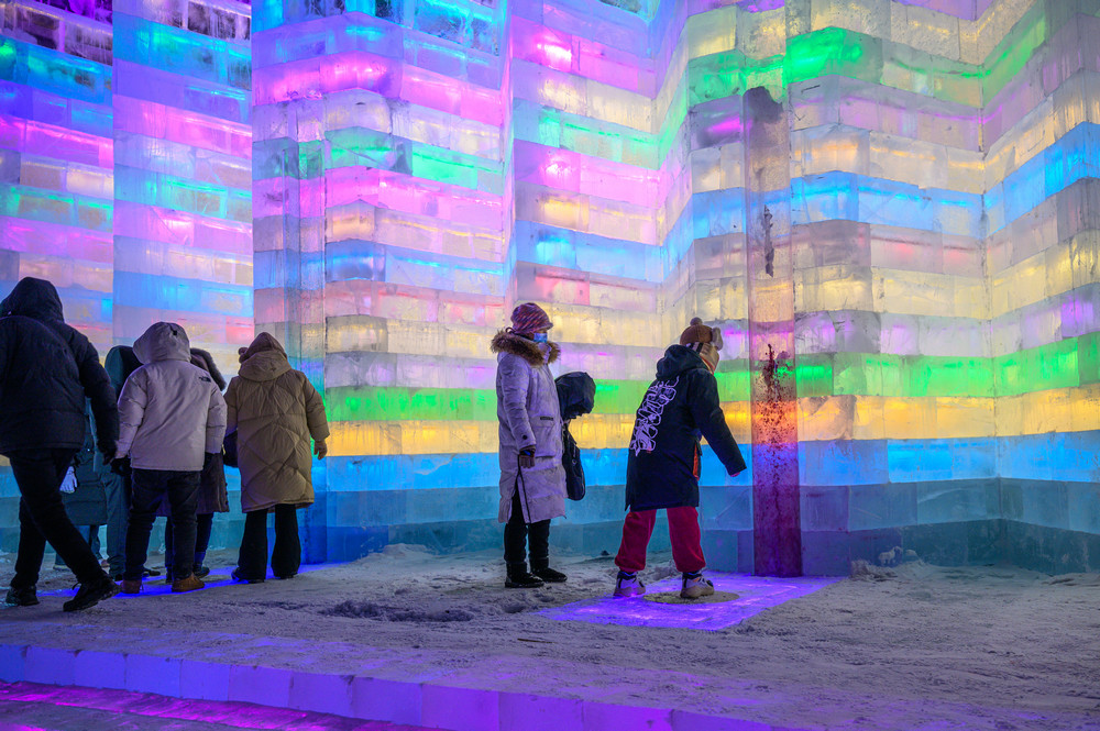游客在《冰雪芳華》主題樂(lè)園內(nèi)游玩