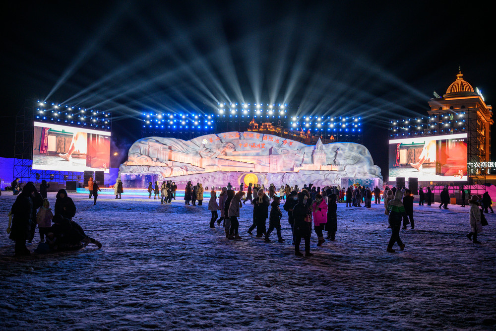 據(jù)了解,本屆冰雪節(jié)打造的《冰雪芳華》主題樂(lè)園占地12萬(wàn)余平方米,以“歲月回響·口岸記憶·共赴未來(lái)”為脈絡(luò),串聯(lián)六大篇章完整復(fù)刻滿洲里從邊陲驛站到國(guó)際口岸的百年變遷。園區(qū)主雕塑“冰雪絲路·三國(guó)同心”與主舞臺(tái)“三國(guó)同心·冰雪同夢(mèng)”融合三國(guó)經(jīng)典建筑元素,成為文化互鑒的視覺(jué)核心。十余項(xiàng)娛樂(lè)項(xiàng)目免費(fèi)開(kāi)放,14處商品銷(xiāo)售及餐飲業(yè)態(tài)暖心上線,全方位滿足全齡段游客游玩需求。