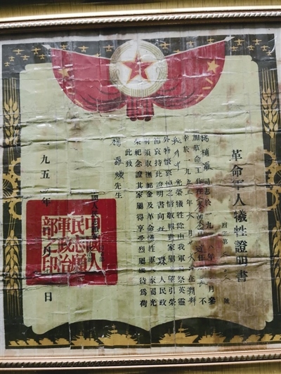 現(xiàn)在,楊智美手里只有家人保存的1954年頒發(fā)的《革命軍人犧牲證明書》和《革命犧牲軍人家屬光榮紀念證》。通過技術(shù)手段,楊智美發(fā)現(xiàn)其背后的文字記錄著二叔的犧牲地點:朝鮮的周嶺洞??恐@些零星的信息,多年來楊智美一直沒有放棄尋找。