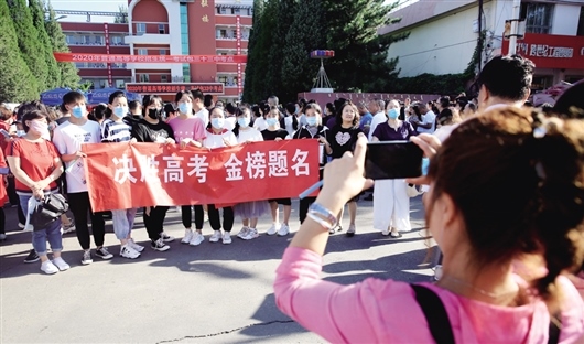 “橫幅是提前做好的,一大早老師們趕來這兒集合,給學生們助陣,希望給他們鼓勁。這特殊時刻的陪伴,對于我們而言也是美好的回憶?!崩蠋熆笛﹫愓f。