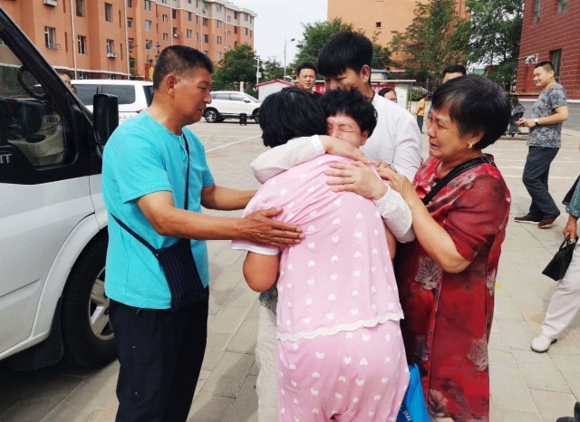當(dāng)一行人下車后看到,迎接他們的李曉霞親人和包頭社會(huì)救助站的工作人員時(shí)都很激動(dòng),李曉霞與家人團(tuán)聚相擁而泣時(shí),在場的每一個(gè)人都感動(dòng)不已。