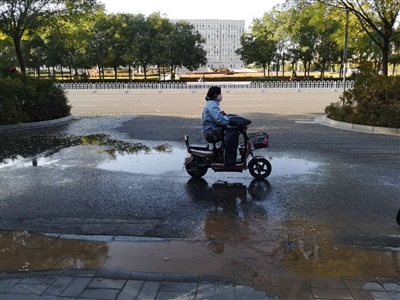 10月12日下午,巴彥淖爾日?qǐng)?bào)社簽約攝影師張偉反映:“河套公園北出口附近被水淹了,有清水不停地從兩塊路邊石之間的縫隙中冒出?!?/p>