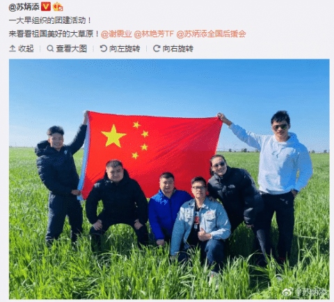 北京時間10月5日,亞洲飛人蘇炳添在社交平臺曬出在內(nèi)蒙古大草原游玩的圖片,他與謝震業(yè)高舉國旗,寫道“一大早組織的團建活動!來看看祖國美好的大草原”。