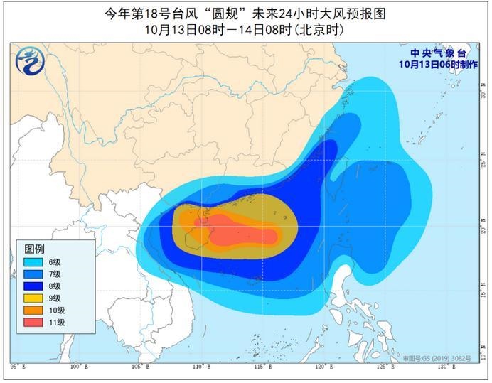 大風(fēng)預(yù)報(bào):13日08時(shí)至14日08時(shí),東海西部和南部、臺(tái)灣以東洋面、臺(tái)灣海峽、巴士海峽、南海中部和北部、北部灣、瓊州海峽、西沙群島、中沙群島和黃巖島附近海域,以及浙江沿海、福建沿海、廣東沿海、廣西沿海和海南島及其沿海將有6-8級(jí)、陣風(fēng)9-10級(jí)的大風(fēng),其中南海西北部、瓊州海峽、北部灣、廣東西部沿海及雷州半島、海南島及其沿海等地的部分海域或地區(qū)的風(fēng)力可達(dá)9-11級(jí)、陣風(fēng)11-13級(jí),“圓規(guī)”中心經(jīng)過的附近海域或地區(qū)的風(fēng)力有12-13級(jí),陣風(fēng)可達(dá)14-16級(jí)。