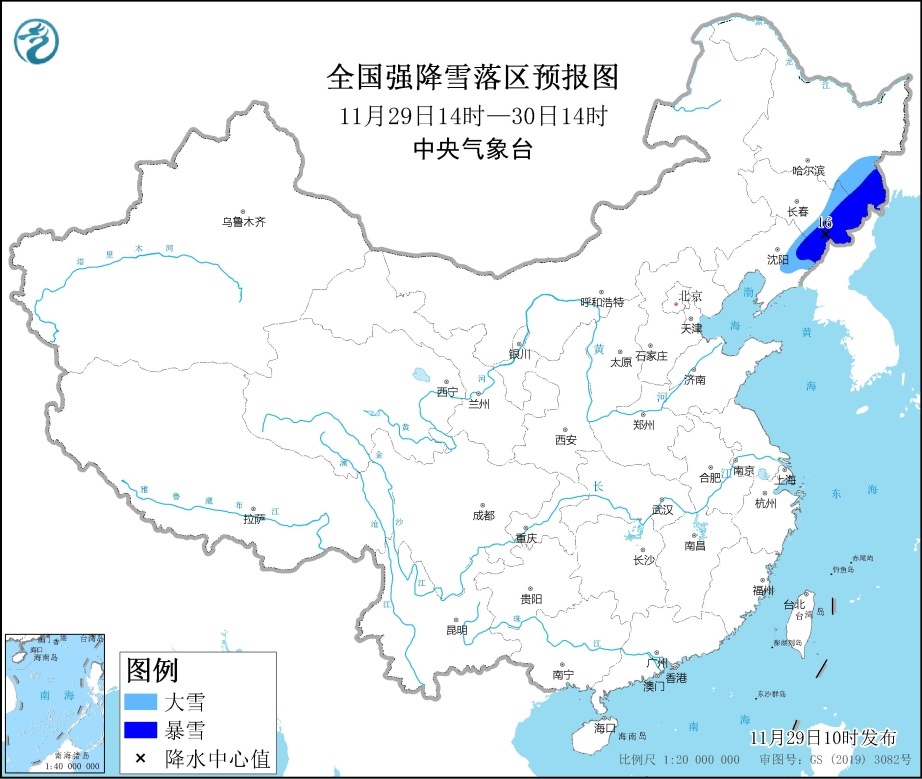 人民網(wǎng)北京11月29日電 (記者溫璐、郝孟佳)今天,中央氣象臺發(fā)布暴雪藍色預警。預計11月29日14時至30日14時,遼寧東北部、吉林東部、黑龍江東南部等地有大雪,部分地區(qū)有暴雪(10~16毫米)。上述部分地區(qū)新增積雪深度5~10厘米,局地可達15厘米以上。