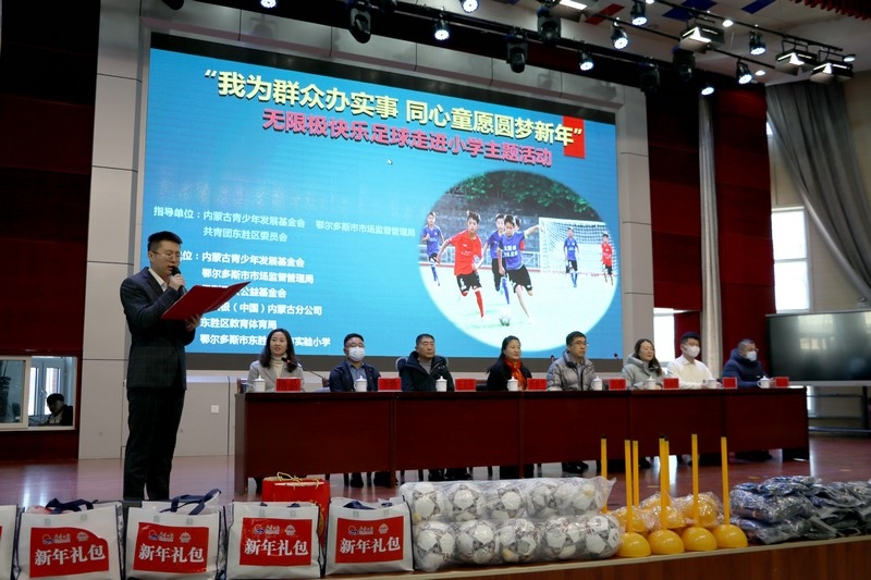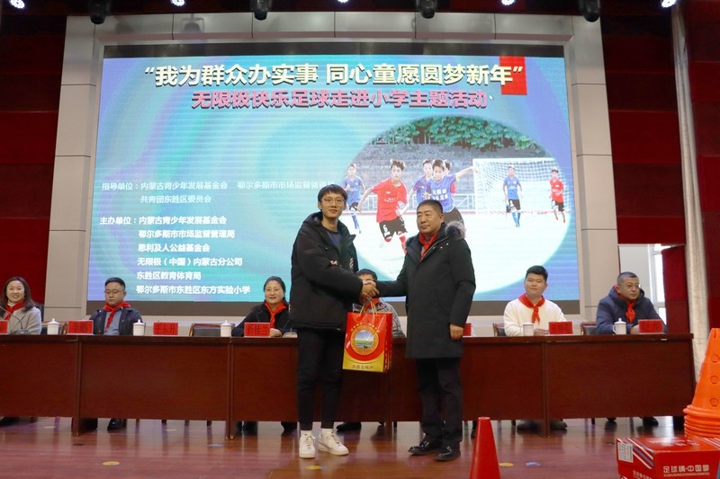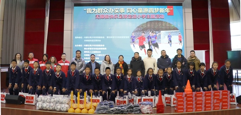 北疆新聞網(wǎng)、北疆新聞APP、北疆云消息 12月3日,思利及人公益基金會、無限極(中國)內(nèi)蒙古分公司攜手內(nèi)蒙古青少年發(fā)展基金會、鄂爾多斯市市場監(jiān)督管理局、共青團東勝區(qū)委員會、東勝區(qū)教育體育局、無限極內(nèi)蒙古志愿者協(xié)會走進內(nèi)蒙古鄂爾多斯市東勝區(qū)東方實驗小學,開展“我為群眾辦實事 同心童愿圓夢新年”無限極快樂足球慰問公益活動。為學校的孩子們送上了一份特別的禮物,由“無限極快樂足球”公益項目提供的足球、球服、球鞋、繞桿、訓練桶等足球裝備和訓練器材。孩子們在收到捐贈后,露出開心燦爛的笑容。