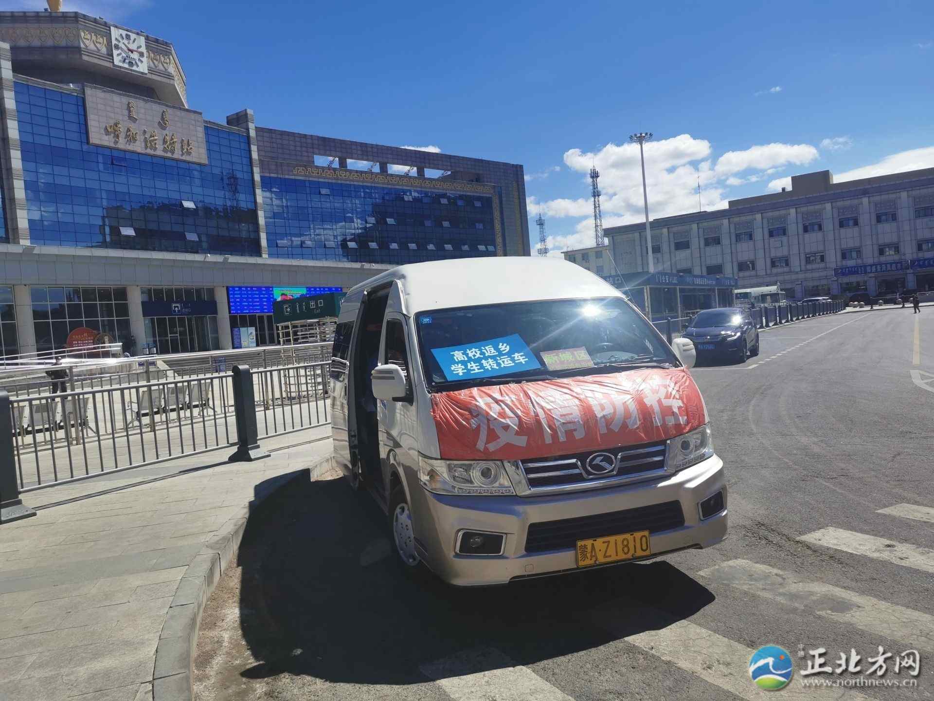 當(dāng)日,記者在呼和浩特火車(chē)站出站口看到,這里設(shè)置了“高校學(xué)生離校返鄉(xiāng)專(zhuān)用通道”的牌子,大學(xué)生下了火車(chē)可以按照牌子和工作人員的指示,走專(zhuān)用通道出站,車(chē)站門(mén)口還停著一輛掛著“高校返鄉(xiāng)學(xué)生轉(zhuǎn)運(yùn)車(chē)”牌子的面包車(chē)。