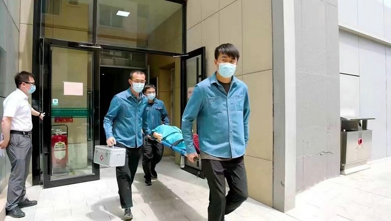 在隨后進(jìn)行的消防安全應(yīng)急疏散演練模擬中,消防組、醫(yī)療組與信息組各司其職,默契配合,順利完成預(yù)定的各項(xiàng)任務(wù)。培訓(xùn)人員通過現(xiàn)場(chǎng)演示滅火器使用的操作程序,使參訓(xùn)人員正確掌握了滅火器的操作方法。