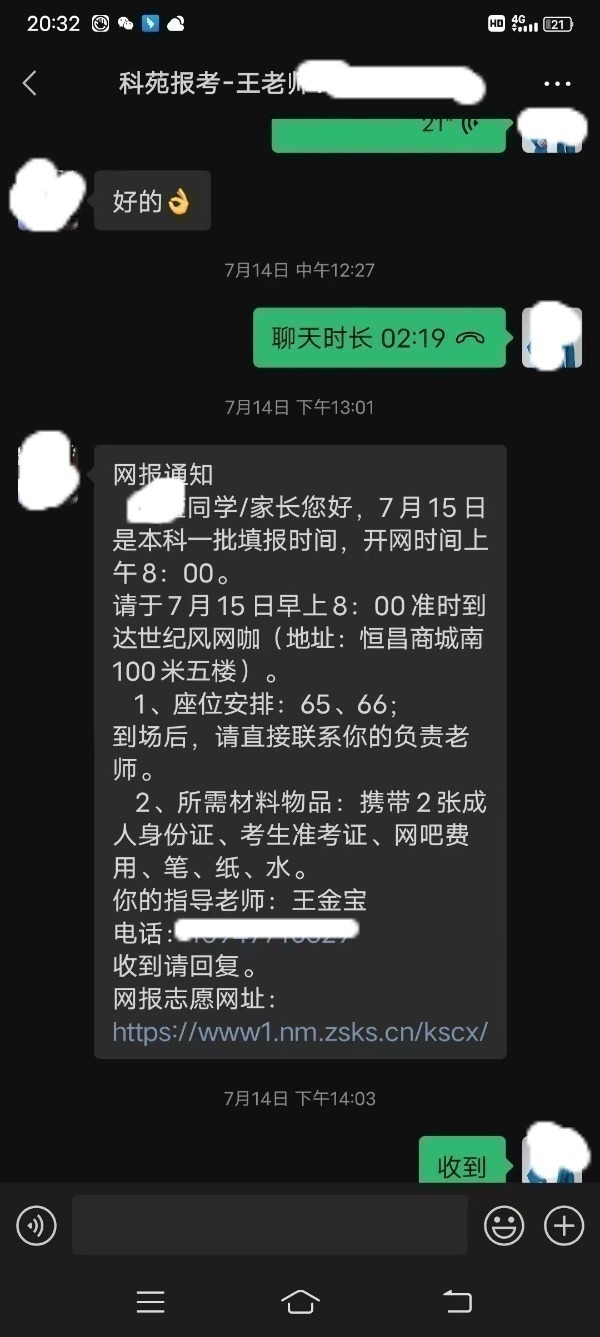 7月26日,呼和浩特市民樊女士致電本報新聞熱線反映:“我女兒小安今年高考成績?yōu)?15分,我們花4500元委托內(nèi)蒙古科苑信息科技有限公司(簡稱科苑報考)填報高考志愿,結(jié)果在提前批被黑龍江省某高校的日語專業(yè)錄取。等到本科一批報考時,機(jī)構(gòu)通知我們?nèi)ヌ顖笾驹?,孩子發(fā)現(xiàn)她已經(jīng)被本科提前批錄取到不想去的學(xué)校和不想讀的專業(yè),孩子現(xiàn)場崩潰大哭?!?/p>