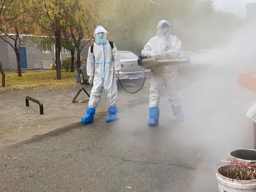 10月29日,呼和浩特市賽罕區(qū)錦繡社區(qū)景觀花園小區(qū),伴隨著“隆隆”的轟鳴聲,幾位身穿防護(hù)服的“大白”背著80多斤的消殺設(shè)備義務(wù)對(duì)小區(qū)道路、大門、垃圾點(diǎn)、居民樓道等公共場(chǎng)所展開消殺。殊不知,這是一支由15名小區(qū)業(yè)主自發(fā)組成的消殺志愿者團(tuán)隊(duì),他們自籌資金購買消殺設(shè)備,面對(duì)看不見摸不著的病毒展開“總攻”,為保障小區(qū)居民環(huán)境的安全貢獻(xiàn)自己的一份力量。