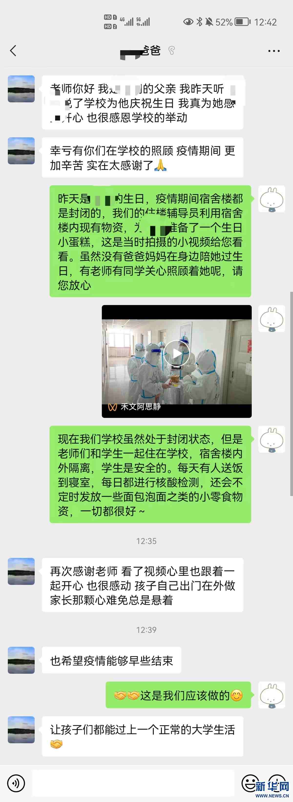 內蒙古工業(yè)大學北二公寓學生家長向老師們表示感謝。新華網(wǎng)發(fā)(受訪者供圖)