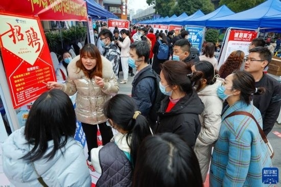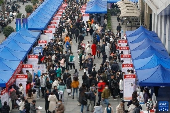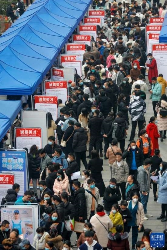 2月17日,人們在中國成都人力資源服務(wù)產(chǎn)業(yè)園查看招聘信息,尋找工作機(jī)會。