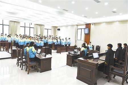 伴隨著“小法官”手中的法槌落下,一場庭審體驗(yàn)活動正式開始。在法庭干警的指導(dǎo)下,8名學(xué)生“一秒入戲”,從宣讀法庭紀(jì)律、核對當(dāng)事人身份,到法庭調(diào)查、舉證質(zhì)證、法庭辯論,整個(gè)庭審程序嚴(yán)謹(jǐn)規(guī)范、秩序井然。