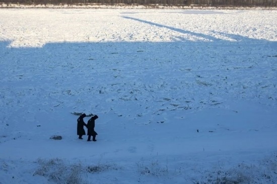 “慢點(diǎn)走,這雪地看著平整,下面還有一層冰?!笔废葟?qiáng)一邊說(shuō)一邊攙著沈欣慢慢走。沿著江堤一路下坡,走到頭就是黑龍江,江面中間插著國(guó)旗標(biāo)識(shí)國(guó)界。