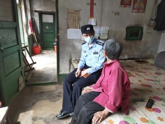 圖為移民管理警察王鐵映走訪慰問(wèn)轄區(qū)獨(dú)居老人李淑蘭。