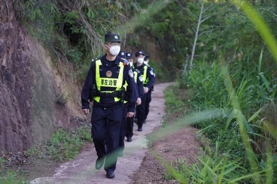 2021年3月,黃日所在的專(zhuān)案組掌握到一個(gè)重要信息,一個(gè)運(yùn)送人員非法入境的犯罪團(tuán)伙正在崇左天等縣秘密轉(zhuǎn)運(yùn)人員。“必須要把這伙犯罪分子裝進(jìn)‘袋子’里!”黃日和戰(zhàn)友們通過(guò)縝密偵查,最終決定在天等縣和大新縣接壤的一段窄路上設(shè)伏。