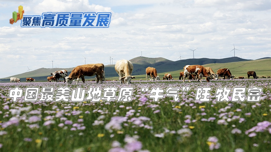 牛群在美麗的扎魯特草原上悠然吃草踱步。新華網(wǎng)發(fā)(白敖敏攝)