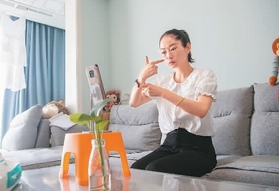 90后聽障女孩譚婷通過直播平臺(tái)為聽障人士解答法律問題。新華社記者 唐 奕攝