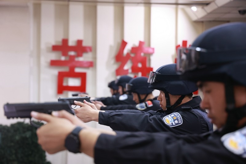 “驗(yàn)槍,上彈匣,開(kāi)始射擊!”隨著現(xiàn)場(chǎng)指揮員的口令,密集的槍聲響徹地下靶場(chǎng)。對(duì)于特警而言,精度射擊是日?;A(chǔ)訓(xùn)練,相比其他警種,他們需要完成兩種以上武器的精度射擊訓(xùn)練,在技巧和精準(zhǔn)層面要求更高。同時(shí),本次集訓(xùn)更增加了戰(zhàn)術(shù)攻防應(yīng)用射擊,攻防雙方以小組作戰(zhàn)的形式,在模擬場(chǎng)景中圍繞劫持人質(zhì)、武裝對(duì)抗等警情開(kāi)展對(duì)抗。小組成員們密切配合,采取戰(zhàn)術(shù)動(dòng)作對(duì)房間內(nèi)的嫌疑人進(jìn)行武力攻擊,對(duì)發(fā)現(xiàn)的人質(zhì)予以保護(hù),擊斃嫌疑人、解救人質(zhì)。通過(guò)多輪次的攻防互換,特警隊(duì)員們的臨戰(zhàn)心理、戰(zhàn)斗意識(shí)和突擊攻堅(jiān)戰(zhàn)術(shù)有了顯著增強(qiáng),更進(jìn)一步提高了團(tuán)隊(duì)協(xié)作能力。
