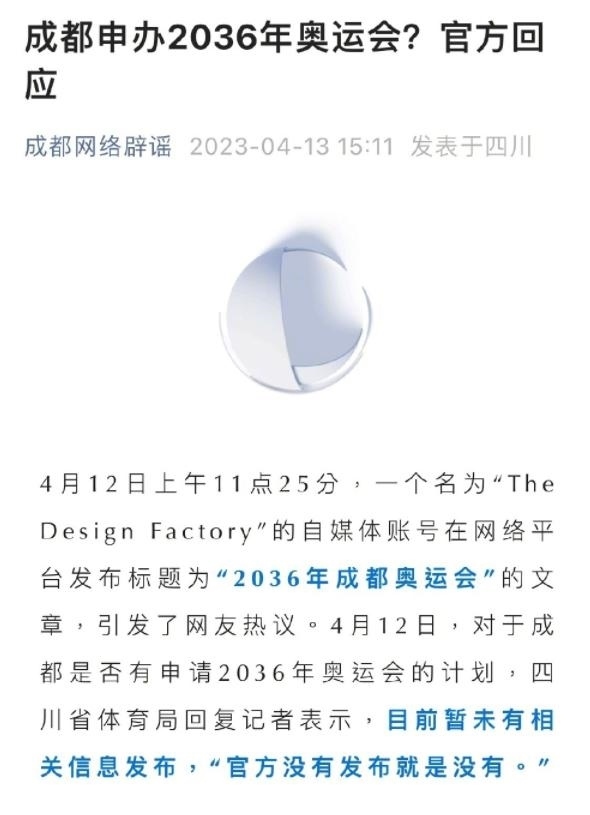 ·官方回應(yīng)成都申辦2036年奧運(yùn)會(huì):官網(wǎng)未發(fā)布就是沒有。