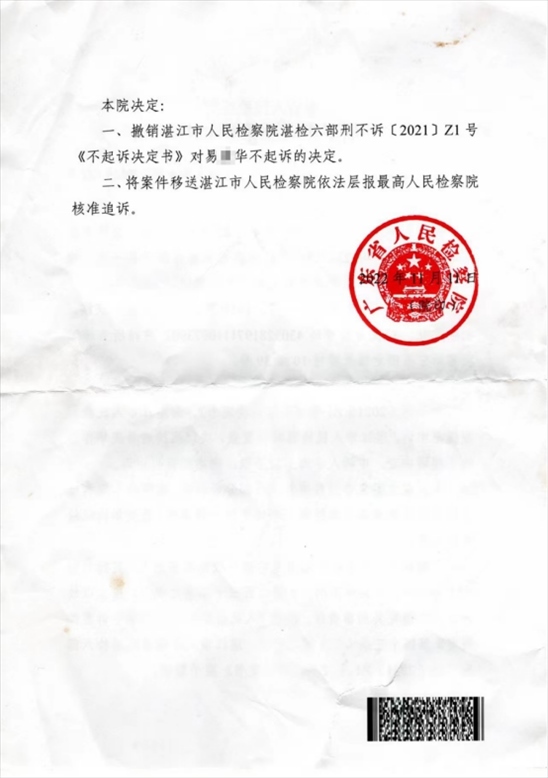 ·廣東省檢復(fù)查“潛逃27年命案嫌犯被不起訴”:撤銷,報最高檢核準(zhǔn)追訴。