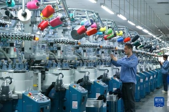 5月4日,在山東省青島市即墨區(qū)一家制襪企業(yè),工人生產(chǎn)出口到海外市場的產(chǎn)品。